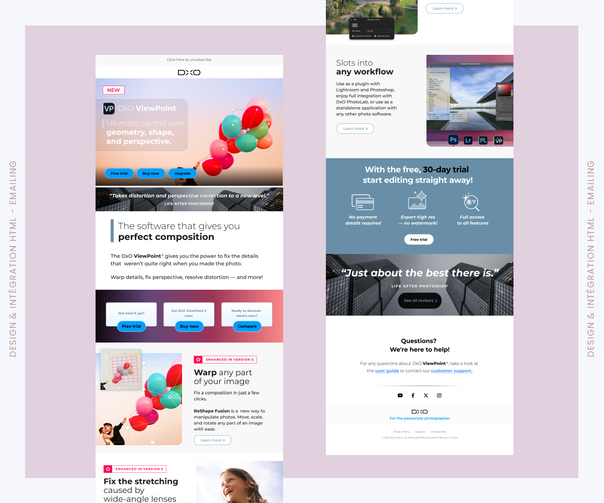 Intégration HTML :compatible sur desktop et sur mobile.